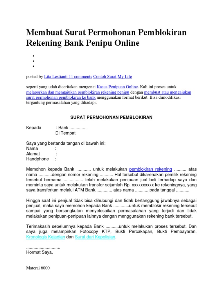 Contoh Surat Permohonan Blokir Rekening Python from i0.wp.com Surat pernyataan ini juga dapat dibuat oleh segolongan kelompok yang mana untuk mencapai suatu kesepakatan dengan kelompok lainnya. Untuk membuat surat pernyataan sebenarnya sahabat bisa browsing di internet hanya dengan mencari pada search engine maka akan muncul berbagai macam tutorial ataupun contoh. Hindari dan laporkan segala bentuk penipuan yang mengatasnamakan pemerintah penyelenggara cpns. Surat pernyataan juga bisa digunakan untuk menimbulkan efek jera bagi seseorang yang melanggar aturan di suatu tempat. Pernyataan yang akan diberikan secara lisan sering kali sulit untuk diingat dengan secara terperinci. Surat pernyataan sendiri memiliki beberapa jenis, seperti surat pernyataan kerja, surat pernyataan kesanggupan, surat pernyataan belum menikah, dan masih banyak lagi yang lain. Sebelum masuk ke contoh surat pernyataan ada baiknya kita pahami sedikit tentang surat pernyataan itu sendiri. Dokumen yang anda download pada halaman ini berbentuk dokumen word, png, jpeg, dan pdf.